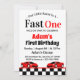 Snabb, en röd Tävling-bilpojke 1:a födelsedag Part Inbjudningar