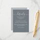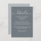Det här detaljkortet för bröllop i en mjuk blå grått-palett är perfektens inmatningskort för att dela viktig information med gäster. Designat i ett enkelt, minimalistiskt stil, har det ett klassiskt brud- och groommonogram med en tidlös ampersand-detalj. Innehåller utrymme för din bröllop-webbplats och instruktioner för OSA, skapar den ett elegant och ett praktiskt visitkort för gästsvar. En snyggt som avslutar kontakt med bröllop-sviten - anpassa din dator idag!