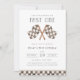 Fast ONE Racing Flags 1-års födelsedagsfest Inbjudan, Vintage Racingbil Födelsedagsfirande Första Födelsedagsinbjudan