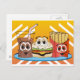 Nyckfull meny för tecknadsnabbmatrestaurang av ett sodavatten, en osthamburgare och fransksmåfiskar.
