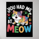 Den här beundransvärda tecknaden har en glad katt med flera färgader med fläckar av grönt, gult, orange, blått och lila päls, som är avtecknad med ett ecstatiskt uttryck med öppen mun. Omgivande katt i lycklig är utspridda färgstarka tass avtryck och pulserande gnistror. Den djärva texten "NI HADE MIG PÅ MEOW" återges i ett livligt, kontrasterande färg, som humoristiskt fångade den oemotståndliga appellen från en kattens första kallelse. Designen ställs in mot en solid svart bakgrund. Digital nedladdning endast för personlig använda.