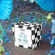 Det här är en snabbstartsfack för en blå Tävling-bil, första födelsedagspartiet.