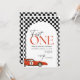 Modern och Roligt Bjud in för att fira din lilla racers första födelsedag. Snabb, kontrollerad bakgrund av inbjudan på en födelsedag.