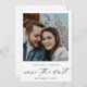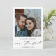 Chic och unikt - du är funktionen i roligten och det moderna snabbfotot-Sparat datumet. Du kan ha lite roligt och skicka samma foto till alla eller till olika personer. Det är underbart för sommartid bröllop, vår, vinter, fallbröllop, rustik och svart bröllop. Det är enkelt att skapa egna Spara datum med mallar och högkvalitativa skrivare för professionell. Besök den här sidan för att göra din Spara datumen idag. Få dina gäster upphetsade för ditt vackra bröllop genom att skicka din moderna och Chic Photo White-Chic Spara datumkort med din foto och moderna kalligrafi.