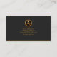 En enkel, minimalistisk svart elegant. Kortet har två rektangulära kolumner, en grått och en svart. Den är inkapslad av en ljusbrun rand högst upp och grund på kortet. Ett annat brunt rand fungerar som en avgränsning mellan de två utrymmena. På övre lagrar hittar du din tillvalsdator faux guld logotyp av en chaufför som du kan använda. Direkt under den svarta kolumnen är din prestigefyllda namn och befattning med kontaktuppgifterna direkt under.