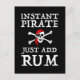 Snabbt Pirat - lägg bara till Rum. Pirat är en underbar gåva till en älskare i pirat som dricker rom i kärlek. Perfekt för Prata som en pirat dag eller bära som pirat-kostym på Halloween eller på party! Om du dricker rom och rom-cocktails, så kan du vara orsaken till att rom är borta! Det här roliga ordspråket att pirat-tillbehör har vintage och en pirat skallgrafik.