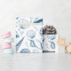 Blått och vitt snäckmönstrat omslagspapper. Matchande föremål finns tillgängliga. Originalkonst från konstnärens egna illustrationer. Vänligen använd knappen 'skicka meddelande' nedan för hjälp med ytterligare anpassning och specialförfrågningar. © Zoe Chapman Design