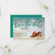 Skicka Spara datum meddelande som inte är fotofoto till en tropisk destination eller ett strandmål eller temat bröllop med detta strandfotografikort med två strutssekval och vinkart hav. Modern stil i turkos teal färg. ~foto av YTC; alla höger reserverade