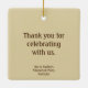 Kvadratisk keramisk ornament med en bild av flera olika segelceller på en sandstrand och ett vitt genomskinligt skrivutrymme. Snäckorna är en Florida-auger, en konch, två rosa-murex, en cockle och en vit havsstjärna. Baksidan är brant med valfri text. Se hela samlingen för fartygsdekoration i SPECIELLA TUUCHES | Avsnittet Party favors.