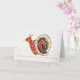 This is a fun Christmas card featuring a festive looking snail complete with red, white, brown and gold sparkle effect Christmas patterns and the text 'authentic snail mail Christmas card'. The design is set against an off white background with a gold colored stars and dots pattern.
