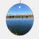 En vacker morgon i slutet av september 2017, i Melba Idaho. Färgstark vy över Snake River med avlägsna kullar och gräs och träd längs stranden.