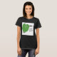 En kvinnas t-shirt med ett unikt ormtryck. Det är en ormjakt på animerad under en stor grönt löv. Ormen har svarta, oregelbundna prickar som gör utformningen mer unik och ger en mystisk kraft. T-shirt innehåller texten: "Snake Hunter".