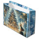 Söt, eteriskt stöd illustrerar en saga som står i en omvälvande skog, mystisk julkonst.