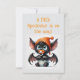Vilket speciellt kontrakt för att få en ny under Halloween-säsongen! Cute baby fladdermus på omslaget med fullständig information om anpassadet på baksidan av en fladdermus täckt bakgrund. Cute, roligt inbjudan.