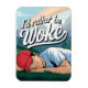 AI skapade en del av en person som sover i gräset framför bergen med rött lock och citatet som säger att jag hellre skulle bli slagen.