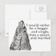 En regalbild av drottning Elizabeth I åtföljt av ett av hennes mest berömd citat: "Jag skulle hellre vara en tiggare och singel än en drottning och gift."