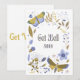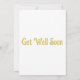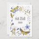 Denna inbjudan visar en samling natur tematiserade dekaler fjärilar och blommor i en blå/guld stil plus bokstäver som visar frasen "Snart Bättre" med en typograf stil i detta Snart Bättre tema. Tryckt på ett klassiskt, runt papper 17,5 pt tjocklek med en obestruken mat finish med en äggskal textur tillverkad och tryckt i USA med "Snart Bättre" tryckt på baksidan.