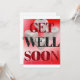 Denna inbjudan har en samling vita ballonger över en röd och vit bakgrund som visar orden "Snart frisk igen" med en röd/svart ros typograf stil i detta Snart frisk igen tema. Tryckt på ett klassiskt, runt papper 17,5 pt tjocklek med en obestruken mat finish med en äggskalstruktur tillverkad och tryckt i USA med "Snart frisk igen" tryckt på baksidan.