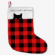 Sneaky Cat Buffalo-ruta röda randiga julstrumpan är den perfekta festliga juldekorationen och en gåva för kattälskaren. Personliggör med din katts namn och text.