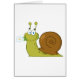Snigel med en blomma i dess mun hälsningskort