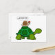 En grönt sköldpadda plundrar på hans vanliga långsamma takt. En snigel (komplett med hjälm- och tävla-glasögon) sitter på toppen och skriker "WEEEEE!", som tydligen trillats vid varphastigheten. Som så många sak är det en fråga om perspektiv, eller hur?! Om du vill kan du ändra bakgrunden till färg med alternativen CUSTOMIZE och EDIT. Det finns gott om utrymme om du vill lägga till ett personlig-meddelande eller även namn!