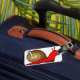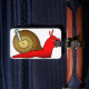 En snigel kan resa slo men låter inte den dumbom dig. De är en underbar varelse. Denna design av en snigel göras i en tecknadstil. Snigeln är röd, och snäckan har en lampglas som är kommande ut ur den. Denna snigeldesign ser underbar på dessa bagagemärkre. Perfekt för dig eller som en gåva