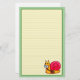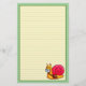 Stationärt presentera en lycklig röd och gul snigel som griper ett kuvert som förseglas med en hjärta i dess mun. Han bar en postbag och är klar att bära ditt meddelande.