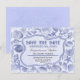 Underbara vintageinspirerade blå "save the date"-kort för tropiska strandbröllop. Diverse musselskala blandning och gammal text inuti en nautisk rep-ram, allt färdigt på en gammal pappersbakgrundstextur. Vänligen kontakta mig om du behöver hjälp med anpassning eller har en begäran om anpassad färg.