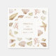 Snigelskal Bröllop Servetter. Unika och stilrena, dessa enkla moderna strandbröllop servetter har vackra handmålade snigelskal, koraller och sjöstjärnor i jordtonade neutrala färger arrangerade som ett mönster. Texten är tan och bakgrunden är vit. Hitta matchande artiklar i Watercolor Seashell Beach Wedding Collection.
