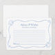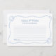 En mjuk, kustinspirerad tolkning av en klassisk bröllopsskickelse, detta råd- och önskningskort blandar tidlös tradition med en förfinad, kustområdesestetik. Ömtåliga blå snäckillustrationer ramar in kortet med mjuk rörelse och skapar ett uttryck som känns luftigt, raffinerat och tyst romantisk.