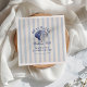 Denna eleganta kollektion har en vintageinspirerad, handritad illustration i marinblått av ett snigelskal på en mjuk, dammig blå randig bakgrund och kalligrafiskt typsnitt.