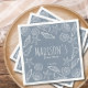 Förhöj din strandfest med Seashells and Starfish Coastal Bridal Shower servetter! Mot en dammig blå bakgrund visar dessa eleganta servetter brudens namn i mitten, med "Bridal Shower" och datum skrivet under i krispiga vita bokstäver. Ömtåliga vita illustrationer av snäckskal och sjöstjärna ramar in designen och skapar en charmig kustnära känsla. Perfekta för en strand-, nautisk eller havsinspirerad brudfest, dessa servetter ger en personlig och stilren touch till din evenemangsinredning.
