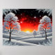 Fördela den kraftfulla skönheten i naturen i ditt utrymme med detta konstverk, Snöig vinter skog under röd solnedgång, som fångar en hisnande kontrast mellan kall vinter och varm glödande himmel. ❄️🌅