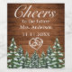 "Skål" bröllopsfest flasketikett. Rustik brun trä, snöigt bakgrund och snöig skog. Mysig vintage lantlig stil. Fler föremål finns tillgängliga i denna stil i vår butik. Du kan redigera designen ytterligare, ändra färger, typsnitt och lägga till extra text genom att klicka på "anpassa ytterligare" länk.