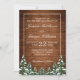 Bröllopsjubileum inbjudningskort. Rustika bruna trästycken, snöig bakgrund och snöig skog. Mysig vintage lantlig stil. Fler föremål finns tillgängliga i denna stil i vår butik. Du kan redigera designen ytterligare, ändra färger, teckensnitt och lägga till extra text genom att klicka på "redigera ytterligare"-länken.