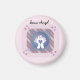 En söt liten snö-ängel med rosa vingar som håller ett lila hjärta. Mjuk stars och stripes accentuerar denna vinterdesign. Kom ihåg att skapar änglar i snö kanske du borde påminna någon med den här rosa snö ängelmagnet.