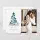 Snö Aquarell Tall Julgran Present Foto Helg Vykort