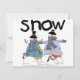 Två snögubbe-kompisar och ett par små penguiner leker tillsammans i snö en vinterdag på Snö Buddies T-shirts, hoodies, mugg, kort, magneter, tote bags och andra snögubbe-redskap.