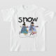 Två snögubbe-kompisar och ett par små penguiner leker tillsammans i snö en vinterdag på Snö Buddies T-shirts, hoodies, mugg, kort, magneter, tote bags och andra snögubbe-redskap.