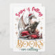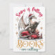 En festlig och glad juldesign visar en drake i en tomtehatt, sittande på en hög med kuddar, försjunken i en bok. Bredvid kuddarna finns julklappar och ett brinnande ljus, med gyllene snöflingor som ramar in scenen. Den livfulla texten lyder, "Snö faller, böcker kallar". Denna design finns tillgänglig på olika produkter, vilket gör den till en perfekt present för bokälskare.
