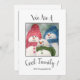 Ett Snö-kort för julhälsning i Coola som du kan anpassa med din egen familj bild. 3 Snögubbar med halsdukar och huvudbonader i färg av grönt, rött och blått med matchningsknappar nedtill på framsidan