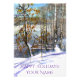 Konstnär av Zolotareva. Vattenfärg på silke - Original hand Watercolor-målade konst. Fryst Snö Winter Forest Scene. Snö-täckt virke.vinterlandskap.Du kan lägga till namn eller anpassningsbar text. Anpassa mallen.