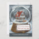 Julkort från ny adress. Utformningen har ett hus i en stor snö-jordglob i en snöskog med redbara varvsskyltar för din Julhälsningar. Tecknet lyder för närvarande "christmas önskemål från våra nya gräv" och du kan redigera det om du vill. Det finns också en personlig i grund för att ni ska kunna informera alla om ert byte av adress.