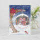 Skaffa helgdag med det här söta vattenfärgskortet med ditt foto i en snö-glob. Baksidan har en röd och vit mässa mönster med en Julhälsningar. Du kan anpassa dig med namn och ett år.
