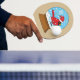 En illustration av en snö-glob med en söt röd kardinal som bär en röd jultomten-bonnet under snö i ett ljust blå himmel. Den här söta tecknaden jultomte är en presentidé för vintern älskare och, fågel och djur älskare.