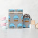 En illustration av en söt snö-glob med tre uggla-gnomer som bär en färgstark julhatt i ett snölandskap med ett gräs träd. En av gnomerna i uggla håller en yxa. Den här tecknadens snödoms- eller vattendjullönsdesign är en presentidé för fåglar älskare, julafton och helgdag på vintern.
