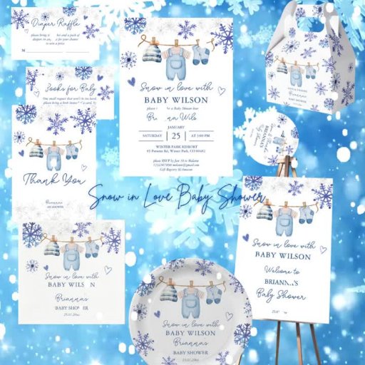 Snö i kärlek snöflingor blå barnkläder på en redigerbar mall för vinterbabyduschning omedelbart digitalnedladdning, dammiga blå boho snöflingor-dockor med hjärtblåa pojke-kläder på en babyduschkort för babyduschkort i kärlek med snö-inbjudningar till babyduschningar i baby