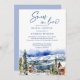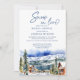 Snö i kärlek vintertid: redigerbar möhippa inbjudan till omedelbar digital nedladdning, vattenfärg: vinterskö i Colorado bergsbyn kallas inbjudan till modernt typsnitt för avslappnad