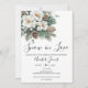Snö I Kärlek vintern inbjudningskort för möhippan med löv, vita blommigtar och lite snö för vintertemat grönt, med vintern