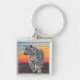 Snö Leopard Walking på stranden under en solnedgån Fyrkantig Silverfärgad Nyckelring